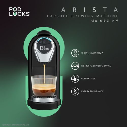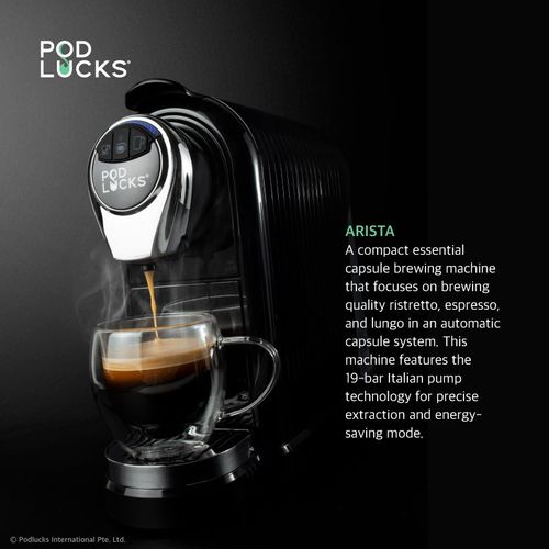 • A compact essential capsule brewing machine that focuses on brewing quality ristretto, espresso, and lungo in an automatic capsule system. This machine features the 19-bar Italian pump technology for precise extraction and energy-saving mode.